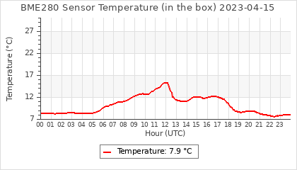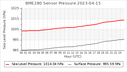 Experimental atmospheric pressure measurement with a simple sensor: BOSCH BME280The instrument is in the data collection box of the CR10X, the temperature and humidity do not reflect the real air conditions, because the box is in the sun and is not properly ventilated for these measurements.