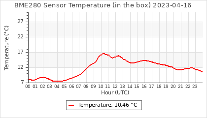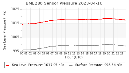 Experimental atmospheric pressure measurement with a simple sensor: BOSCH BME280The instrument is in the data collection box of the CR10X, the temperature and humidity do not reflect the real air conditions, because the box is in the sun and is not properly ventilated for these measurements.