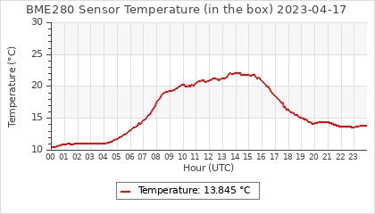 Experimental atmospheric pressure measurement with a simple sensor: BOSCH BME280The instrument is in the data collection box of the CR10X, the temperature and humidity do not reflect the real air conditions, because the box is in the sun and is not properly ventilated for these measurements.