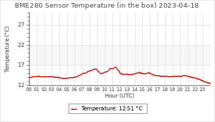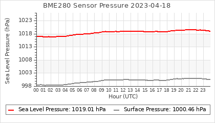 Experimental atmospheric pressure measurement with a simple sensor: BOSCH BME280The instrument is in the data collection box of the CR10X, the temperature and humidity do not reflect the real air conditions, because the box is in the sun and is not properly ventilated for these measurements.