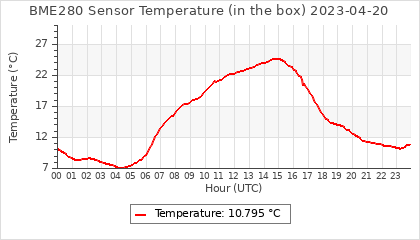 Experimental atmospheric pressure measurement with a simple sensor: BOSCH BME280The instrument is in the data collection box of the CR10X, the temperature and humidity do not reflect the real air conditions, because the box is in the sun and is not properly ventilated for these measurements.