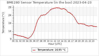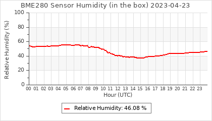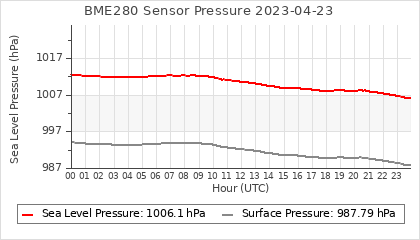 Experimental atmospheric pressure measurement with a simple sensor: BOSCH BME280The instrument is in the data collection box of the CR10X, the temperature and humidity do not reflect the real air conditions, because the box is in the sun and is not properly ventilated for these measurements.
