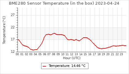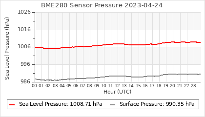 Experimental atmospheric pressure measurement with a simple sensor: BOSCH BME280The instrument is in the data collection box of the CR10X, the temperature and humidity do not reflect the real air conditions, because the box is in the sun and is not properly ventilated for these measurements.