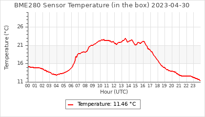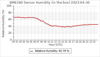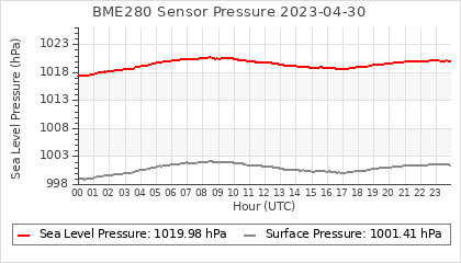 Experimental atmospheric pressure measurement with a simple sensor: BOSCH BME280The instrument is in the data collection box of the CR10X, the temperature and humidity do not reflect the real air conditions, because the box is in the sun and is not properly ventilated for these measurements.