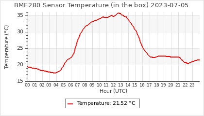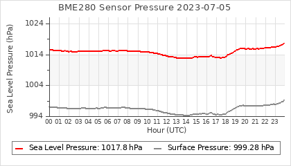 Experimental atmospheric pressure measurement with a simple sensor: BOSCH BME280The instrument is in the data collection box of the CR10X, the temperature and humidity do not reflect the real air conditions, because the box is in the sun and is not properly ventilated for these measurements.