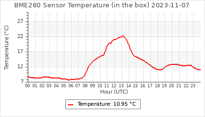 Experimental atmospheric pressure measurement with a simple sensor: BOSCH BME280The instrument is in the data collection box of the CR10X, the temperature and humidity do not reflect the real air conditions, because the box is in the sun and is not properly ventilated for these measurements.