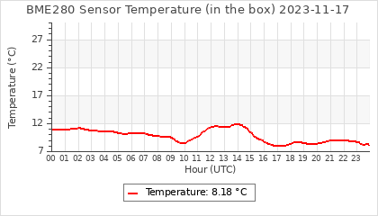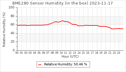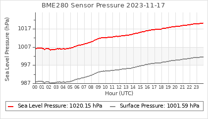 Experimental atmospheric pressure measurement with a simple sensor: BOSCH BME280The instrument is in the data collection box of the CR10X, the temperature and humidity do not reflect the real air conditions, because the box is in the sun and is not properly ventilated for these measurements.