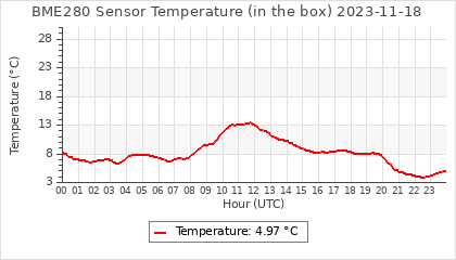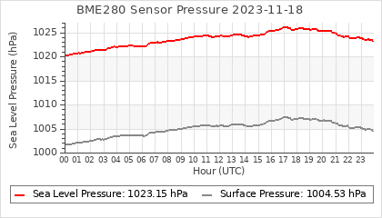 Experimental atmospheric pressure measurement with a simple sensor: BOSCH BME280The instrument is in the data collection box of the CR10X, the temperature and humidity do not reflect the real air conditions, because the box is in the sun and is not properly ventilated for these measurements.
