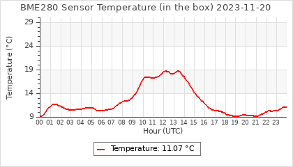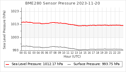 Experimental atmospheric pressure measurement with a simple sensor: BOSCH BME280The instrument is in the data collection box of the CR10X, the temperature and humidity do not reflect the real air conditions, because the box is in the sun and is not properly ventilated for these measurements.