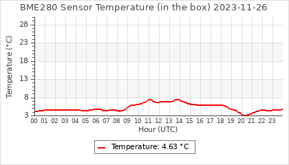 Experimental atmospheric pressure measurement with a simple sensor: BOSCH BME280The instrument is in the data collection box of the CR10X, the temperature and humidity do not reflect the real air conditions, because the box is in the sun and is not properly ventilated for these measurements.