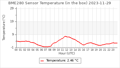 Experimental atmospheric pressure measurement with a simple sensor: BOSCH BME280The instrument is in the data collection box of the CR10X, the temperature and humidity do not reflect the real air conditions, because the box is in the sun and is not properly ventilated for these measurements.