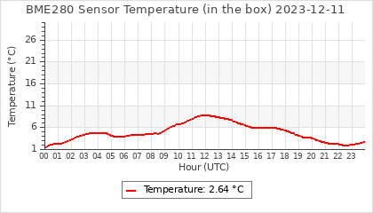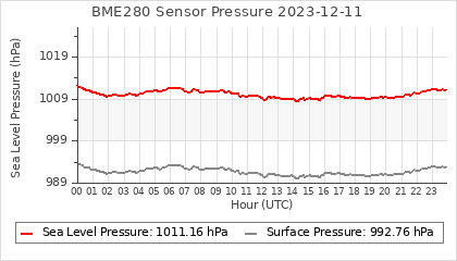 Experimental atmospheric pressure measurement with a simple sensor: BOSCH BME280The instrument is in the data collection box of the CR10X, the temperature and humidity do not reflect the real air conditions, because the box is in the sun and is not properly ventilated for these measurements.