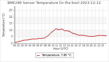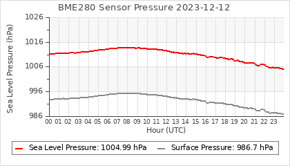 Experimental atmospheric pressure measurement with a simple sensor: BOSCH BME280The instrument is in the data collection box of the CR10X, the temperature and humidity do not reflect the real air conditions, because the box is in the sun and is not properly ventilated for these measurements.