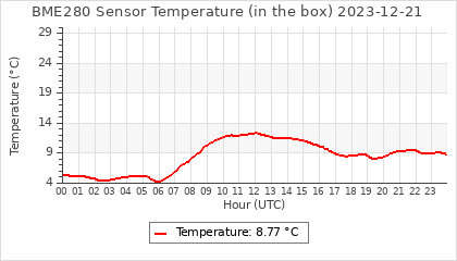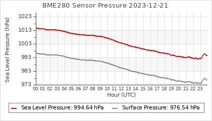Experimental atmospheric pressure measurement with a simple sensor: BOSCH BME280The instrument is in the data collection box of the CR10X, the temperature and humidity do not reflect the real air conditions, because the box is in the sun and is not properly ventilated for these measurements.