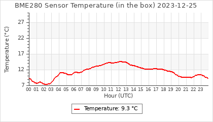 Experimental atmospheric pressure measurement with a simple sensor: BOSCH BME280The instrument is in the data collection box of the CR10X, the temperature and humidity do not reflect the real air conditions, because the box is in the sun and is not properly ventilated for these measurements.