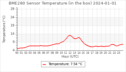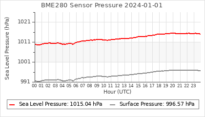 Experimental atmospheric pressure measurement with a simple sensor: BOSCH BME280The instrument is in the data collection box of the CR10X, the temperature and humidity do not reflect the real air conditions, because the box is in the sun and is not properly ventilated for these measurements.