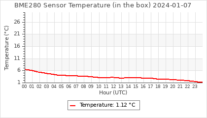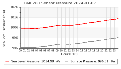 Experimental atmospheric pressure measurement with a simple sensor: BOSCH BME280The instrument is in the data collection box of the CR10X, the temperature and humidity do not reflect the real air conditions, because the box is in the sun and is not properly ventilated for these measurements.