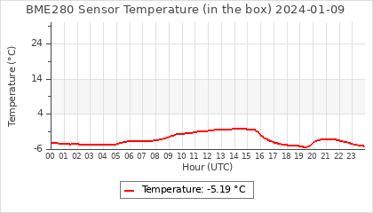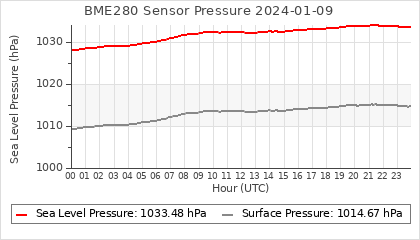 Experimental atmospheric pressure measurement with a simple sensor: BOSCH BME280The instrument is in the data collection box of the CR10X, the temperature and humidity do not reflect the real air conditions, because the box is in the sun and is not properly ventilated for these measurements.