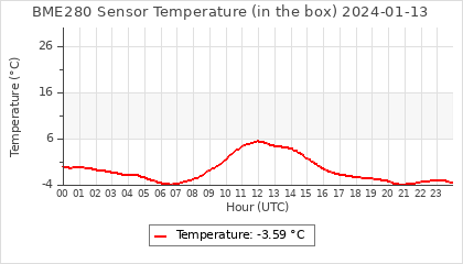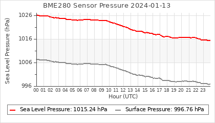 Experimental atmospheric pressure measurement with a simple sensor: BOSCH BME280The instrument is in the data collection box of the CR10X, the temperature and humidity do not reflect the real air conditions, because the box is in the sun and is not properly ventilated for these measurements.