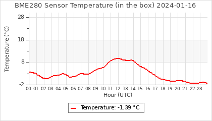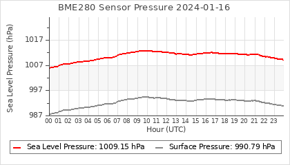 Experimental atmospheric pressure measurement with a simple sensor: BOSCH BME280The instrument is in the data collection box of the CR10X, the temperature and humidity do not reflect the real air conditions, because the box is in the sun and is not properly ventilated for these measurements.