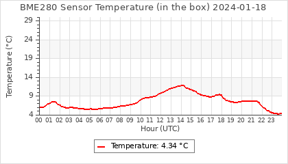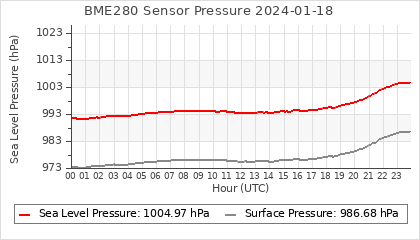 Experimental atmospheric pressure measurement with a simple sensor: BOSCH BME280The instrument is in the data collection box of the CR10X, the temperature and humidity do not reflect the real air conditions, because the box is in the sun and is not properly ventilated for these measurements.