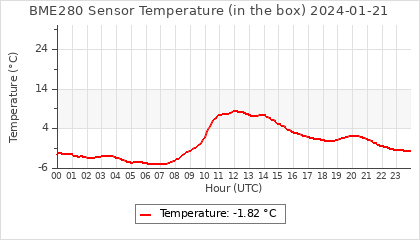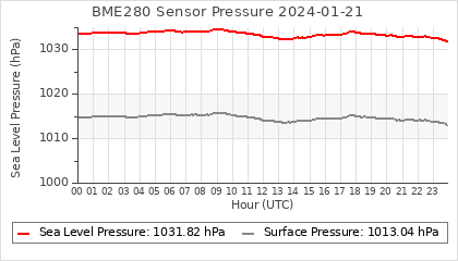 Experimental atmospheric pressure measurement with a simple sensor: BOSCH BME280The instrument is in the data collection box of the CR10X, the temperature and humidity do not reflect the real air conditions, because the box is in the sun and is not properly ventilated for these measurements.