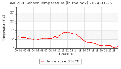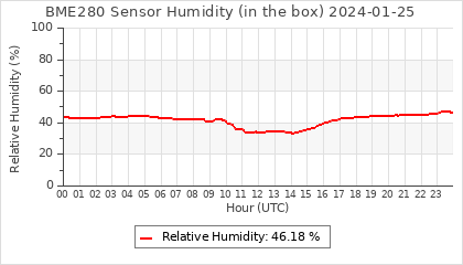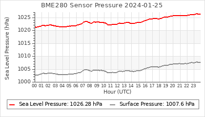 Experimental atmospheric pressure measurement with a simple sensor: BOSCH BME280The instrument is in the data collection box of the CR10X, the temperature and humidity do not reflect the real air conditions, because the box is in the sun and is not properly ventilated for these measurements.