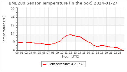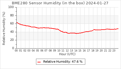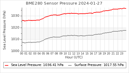 Experimental atmospheric pressure measurement with a simple sensor: BOSCH BME280The instrument is in the data collection box of the CR10X, the temperature and humidity do not reflect the real air conditions, because the box is in the sun and is not properly ventilated for these measurements.