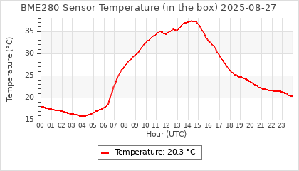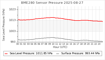 Experimental atmospheric pressure measurement with a simple sensor: BOSCH BME280The instrument is in the data collection box of the CR10X, the temperature and humidity do not reflect the real air conditions, because the box is in the sun and is not properly ventilated for these measurements.