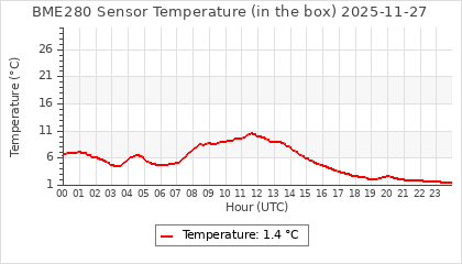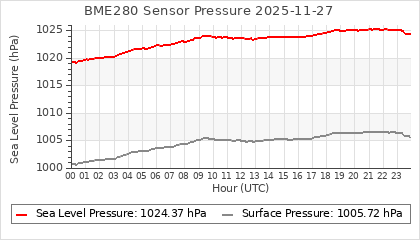 Experimental atmospheric pressure measurement with a simple sensor: BOSCH BME280The instrument is in the data collection box of the CR10X, the temperature and humidity do not reflect the real air conditions, because the box is in the sun and is not properly ventilated for these measurements.
