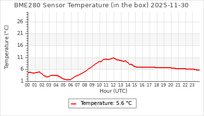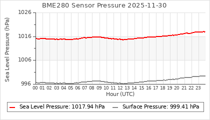 Experimental atmospheric pressure measurement with a simple sensor: BOSCH BME280The instrument is in the data collection box of the CR10X, the temperature and humidity do not reflect the real air conditions, because the box is in the sun and is not properly ventilated for these measurements.