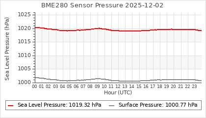 Experimental atmospheric pressure measurement with a simple sensor: BOSCH BME280The instrument is in the data collection box of the CR10X, the temperature and humidity do not reflect the real air conditions, because the box is in the sun and is not properly ventilated for these measurements.