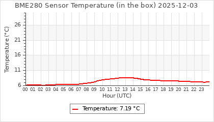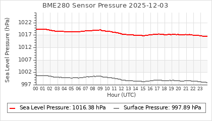 Experimental atmospheric pressure measurement with a simple sensor: BOSCH BME280The instrument is in the data collection box of the CR10X, the temperature and humidity do not reflect the real air conditions, because the box is in the sun and is not properly ventilated for these measurements.