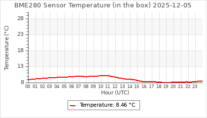 Experimental atmospheric pressure measurement with a simple sensor: BOSCH BME280The instrument is in the data collection box of the CR10X, the temperature and humidity do not reflect the real air conditions, because the box is in the sun and is not properly ventilated for these measurements.