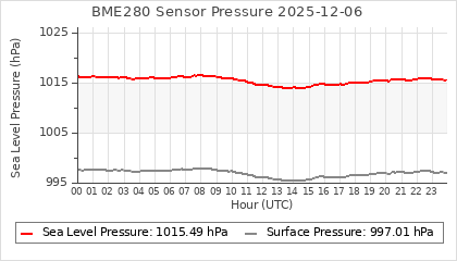 Experimental atmospheric pressure measurement with a simple sensor: BOSCH BME280The instrument is in the data collection box of the CR10X, the temperature and humidity do not reflect the real air conditions, because the box is in the sun and is not properly ventilated for these measurements.
