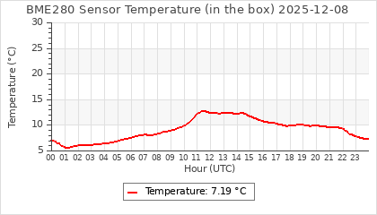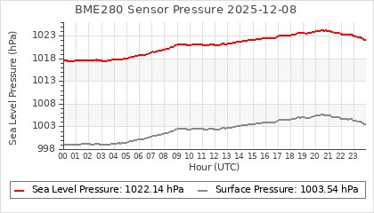 Experimental atmospheric pressure measurement with a simple sensor: BOSCH BME280The instrument is in the data collection box of the CR10X, the temperature and humidity do not reflect the real air conditions, because the box is in the sun and is not properly ventilated for these measurements.