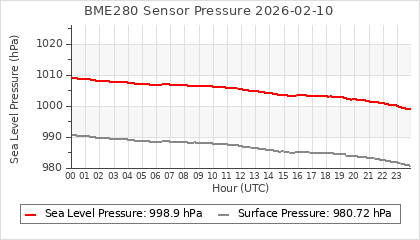 Experimental atmospheric pressure measurement with a simple sensor: BOSCH BME280The instrument is in the data collection box of the CR10X, the temperature and humidity do not reflect the real air conditions, because the box is in the sun and is not properly ventilated for these measurements.