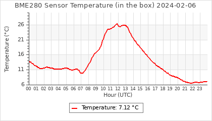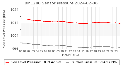 Experimental atmospheric pressure measurement with a simple sensor: BOSCH BME280The instrument is in the data collection box of the CR10X, the temperature and humidity do not reflect the real air conditions, because the box is in the sun and is not properly ventilated for these measurements.