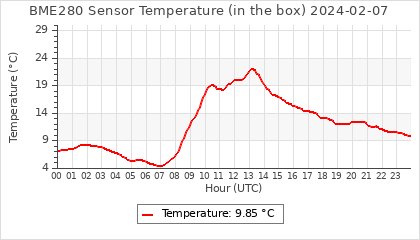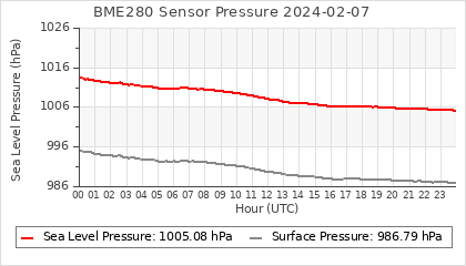 Experimental atmospheric pressure measurement with a simple sensor: BOSCH BME280The instrument is in the data collection box of the CR10X, the temperature and humidity do not reflect the real air conditions, because the box is in the sun and is not properly ventilated for these measurements.