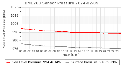 Experimental atmospheric pressure measurement with a simple sensor: BOSCH BME280The instrument is in the data collection box of the CR10X, the temperature and humidity do not reflect the real air conditions, because the box is in the sun and is not properly ventilated for these measurements.