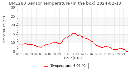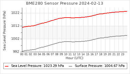 Experimental atmospheric pressure measurement with a simple sensor: BOSCH BME280The instrument is in the data collection box of the CR10X, the temperature and humidity do not reflect the real air conditions, because the box is in the sun and is not properly ventilated for these measurements.