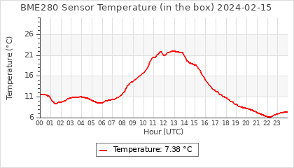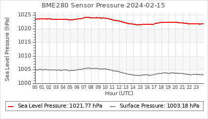 Experimental atmospheric pressure measurement with a simple sensor: BOSCH BME280The instrument is in the data collection box of the CR10X, the temperature and humidity do not reflect the real air conditions, because the box is in the sun and is not properly ventilated for these measurements.