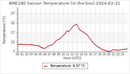 Experimental atmospheric pressure measurement with a simple sensor: BOSCH BME280The instrument is in the data collection box of the CR10X, the temperature and humidity do not reflect the real air conditions, because the box is in the sun and is not properly ventilated for these measurements.
