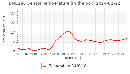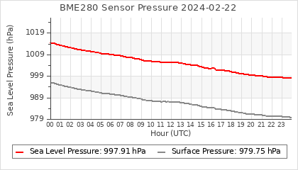 Experimental atmospheric pressure measurement with a simple sensor: BOSCH BME280The instrument is in the data collection box of the CR10X, the temperature and humidity do not reflect the real air conditions, because the box is in the sun and is not properly ventilated for these measurements.