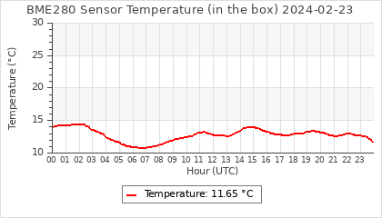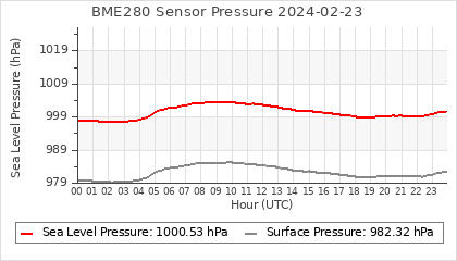 Experimental atmospheric pressure measurement with a simple sensor: BOSCH BME280The instrument is in the data collection box of the CR10X, the temperature and humidity do not reflect the real air conditions, because the box is in the sun and is not properly ventilated for these measurements.