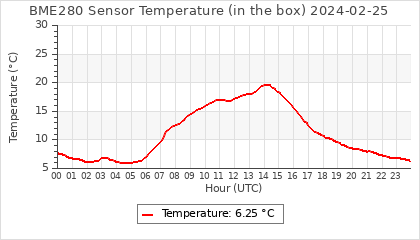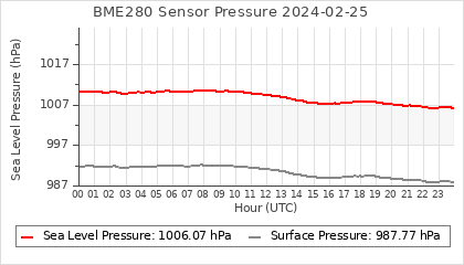 Experimental atmospheric pressure measurement with a simple sensor: BOSCH BME280The instrument is in the data collection box of the CR10X, the temperature and humidity do not reflect the real air conditions, because the box is in the sun and is not properly ventilated for these measurements.