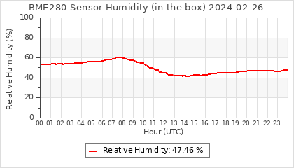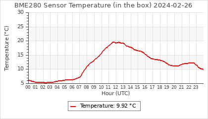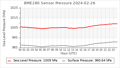 Experimental atmospheric pressure measurement with a simple sensor: BOSCH BME280The instrument is in the data collection box of the CR10X, the temperature and humidity do not reflect the real air conditions, because the box is in the sun and is not properly ventilated for these measurements.