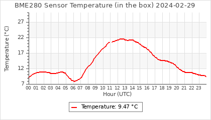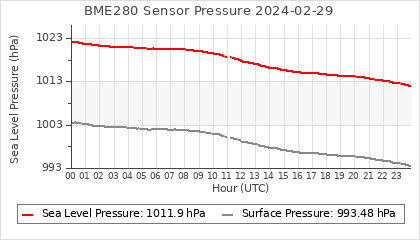 Experimental atmospheric pressure measurement with a simple sensor: BOSCH BME280The instrument is in the data collection box of the CR10X, the temperature and humidity do not reflect the real air conditions, because the box is in the sun and is not properly ventilated for these measurements.