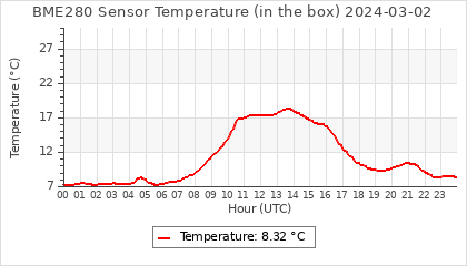 Experimental atmospheric pressure measurement with a simple sensor: BOSCH BME280The instrument is in the data collection box of the CR10X, the temperature and humidity do not reflect the real air conditions, because the box is in the sun and is not properly ventilated for these measurements.