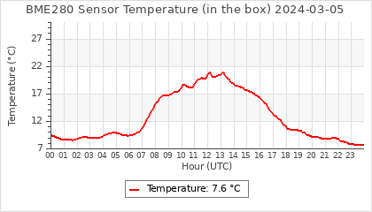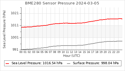 Experimental atmospheric pressure measurement with a simple sensor: BOSCH BME280The instrument is in the data collection box of the CR10X, the temperature and humidity do not reflect the real air conditions, because the box is in the sun and is not properly ventilated for these measurements.